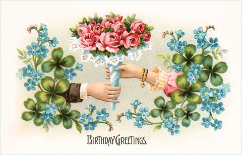 HB-02 Birthday Greetings, Bouquet - Vintage Image