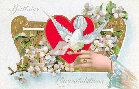 HB-29 Birthday Congratulations, Dove and Flowers - Vintage Image