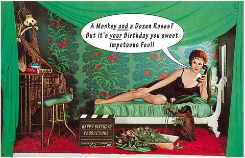 HB-66 Happy Birthday, Roses and Monkey - Vintage Image