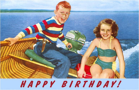 HB-172 Happy Birthday, Kids in Motorboat - Vintage Image