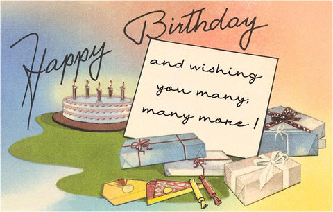 HB-175 Happy Birthday, Cake and Presents - Vintage Image
