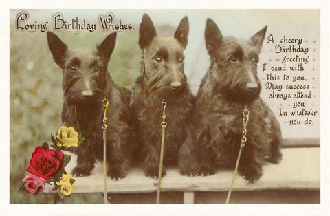 HB-246 Loving Birthday Wishes, Three Scottie Dogs - Vintage Image