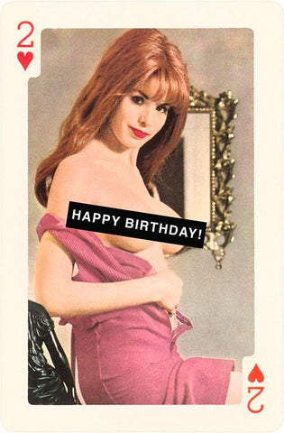 HB-283 Happy Birthday, Pin-Up on Playing Card - Vintage Image