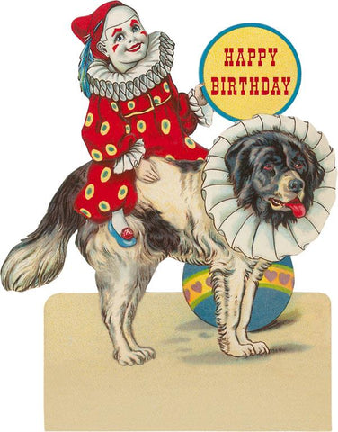 HB-294 Happy Birthday, Clown on St. Bernard - Vintage Image