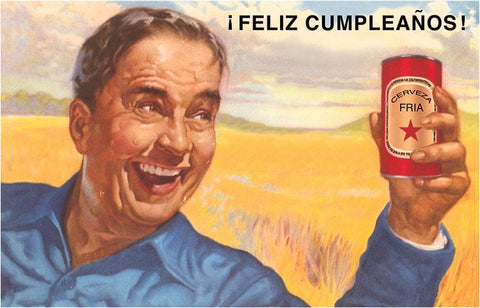 HB-340 Feliz Cumpleanos, Man with Beer - Vintage Image