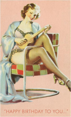HB-370 Woman with Ukulele Singing Happy Birthday - Vintage Image