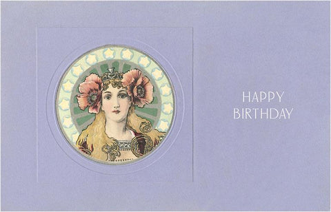 HB-383 Vintage Birthday, Woman with Flowers in Hair - Vintage Image