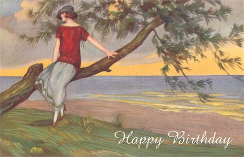 HB-388 Happy Birthday, Woman on Branch - Vintage Image