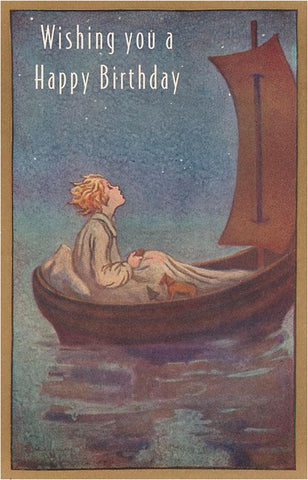 HB-394 Happy Birthday, Little Prince in Sailboat - Vintage Image