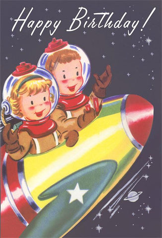 HB-423 Happy Birthday, Kids in Rocketship - Vintage Image