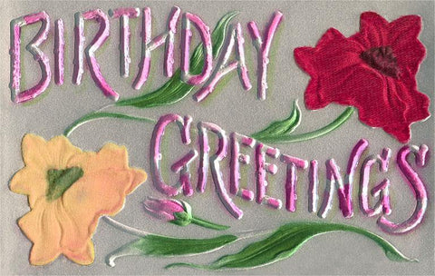 HB-573 Birthday Greetings, Flowers - Vintage Image