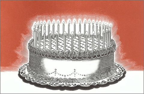 HB-612 White Birthday Cake with Candles - Vintage Image