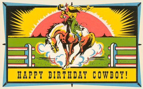 HB-618 Cowboy on Bucking Bronco, Happy Birthday Cowboy! - Vintage Image