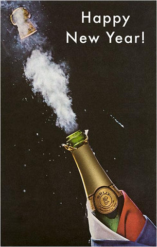 HN-199 Happy New Year, Champagne Bottle - Vintage Image
