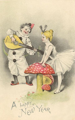 HN-68 Happy New Year, Children with Mushroom - Vintage Image