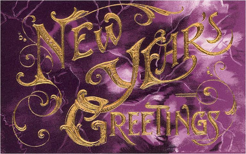 HN-73 New Year Greetings, Purple and Gold - Vintage Image