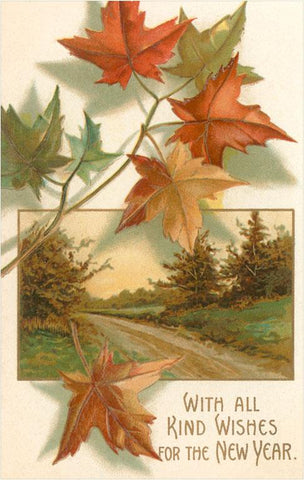 HN-137 Maple Leaves and Forest Trail - Vintage Image