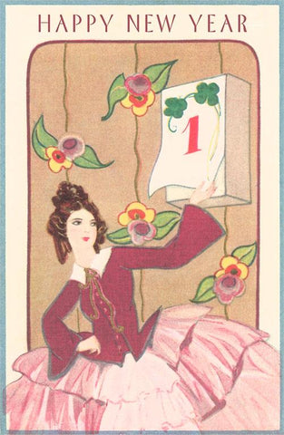 HN-179 Happy New Year, Woman in Costume - Vintage Image