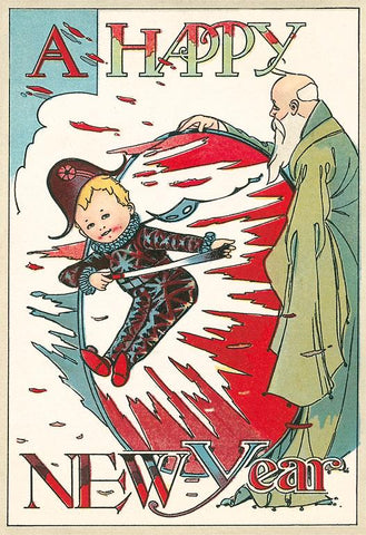 HN-205 Happy New Year, Baby Bursting Through - Vintage Image