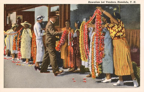 HI-18 Lei Vendors, Honolulu - Vintage Image