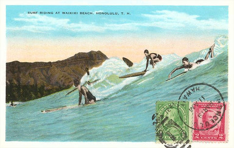 HI-117 Surf Riding at Waikiki - Vintage Image