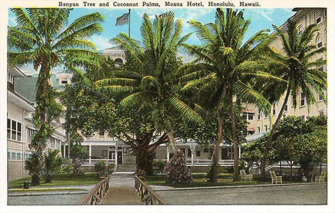 HI-132 Banyan Tree and Palms, Moana Hotel - Vintage Image