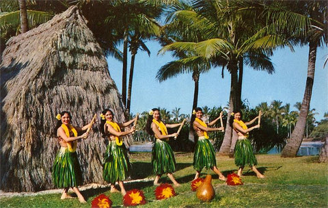 HI-156 Hula Dancers, Grass Hut - Vintage Image