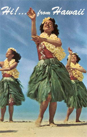 HI-164 Hi from Hawaii, Hula Dancers - Vintage Image