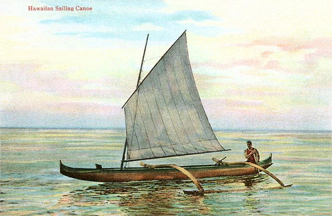 HI-179 Hawaiian Sailing Canoe - Vintage Image