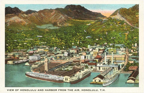 HI-189 Aerial View of Honolulu Harbor - Vintage Image