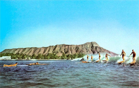 HI-190 Diamond Head, Surfers - Vintage Image