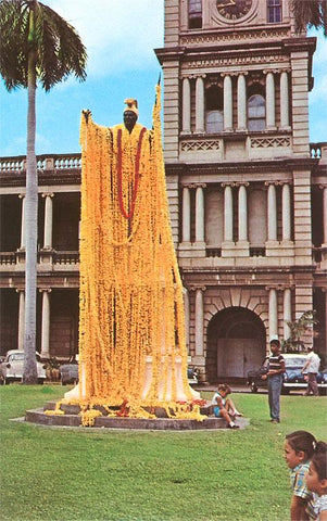 HI-206 King Kamehameha Draped in Leis - Vintage Image