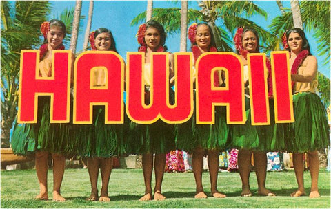 HI-253 Hula Girls Spelling out Hawaii - Vintage Image