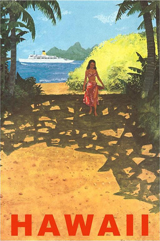 HI-343 Cruise Liner, Girl on Beach Path - Vintage Image