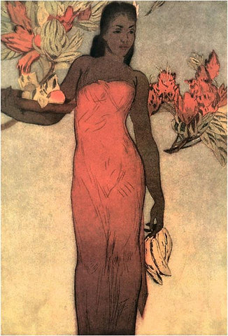 HI-383 Woman with Fruit and Flowers - Vintage Image
