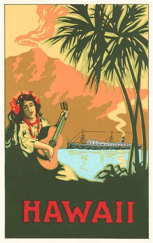 HI-387 Volcano, Cruise Ship, Woman with Guitar - Vintage Image