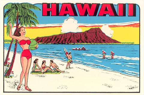 HI-400 Waikiki Beach and Diamond Head - Vintage Image