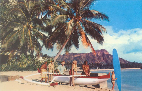 HI-434 Outrigger on Waikiki Beach - Vintage Image