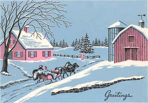 MC-272 Greetings, Sled and Farm - Vintage Image