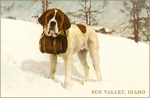 ID-115 St. Bernard with Keg in Snow, Sun Valley - Vintage Image