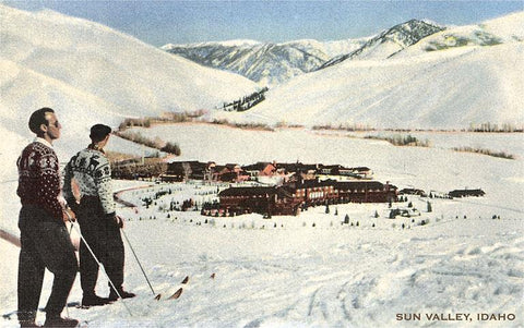 ID-133 Sun Valley, Skiers Viewing Town - Vintage Image