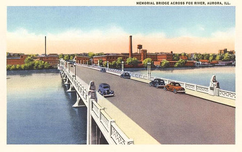 IL-249 Memorial Bridge over Fox River, Aurora - Vintage Image