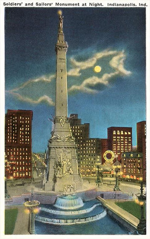 IN-32 Moon over War Memorial, Indianapolis - Vintage Image