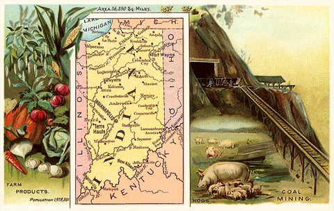 IN-296 Vintage Map, Agriculture, Mining - Vintage Image
