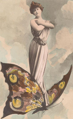 IS-27 Victorian Woman Standing on Butterfly - Vintage Image