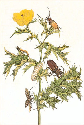 IS-113 Beetles and Grubs on Thistle - Vintage Image