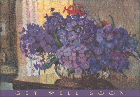 IO-70 Get Well Soon, Violets in Vase - Vintage Image