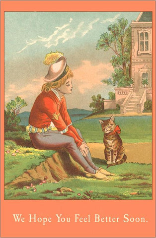 IO-90 We Hope You Feel Better Soon, Boy and Cat - Vintage Image