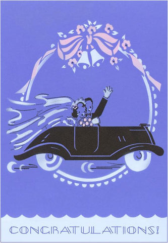 IO-161 Congratulations, Bride and Groom in Car - Vintage Image
