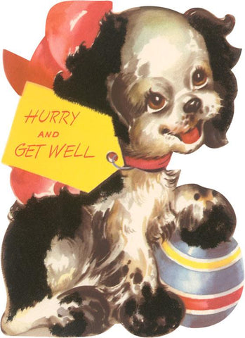 IO-166 Hurry and Get Well, Puppy with Ball - Vintage Image